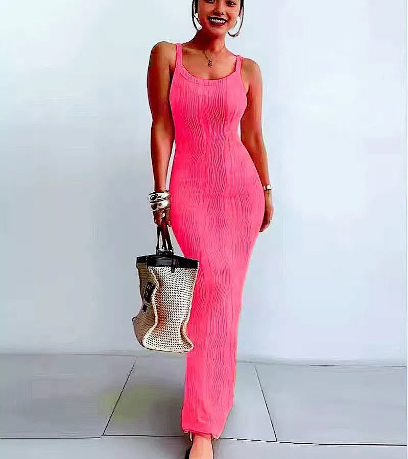 Elegant Sexy Bodycon Long Dress European Style Sleeveless Fashionable One-piece Cotton Polyester Fabric Gown For Women