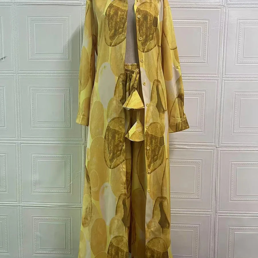 Elegant Sexy Floral Print Top Wide Leg Pants Two Piece Set Summer Fashion Casual Outfit Polyester Long Sleeve Long Pants