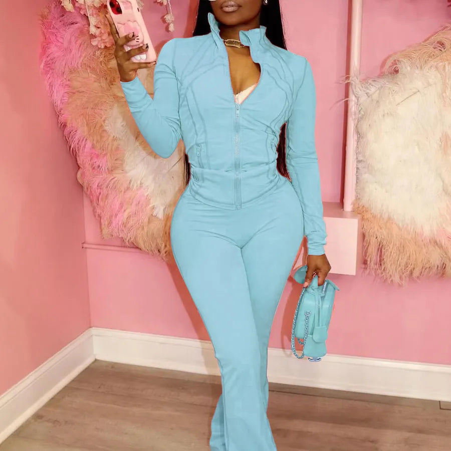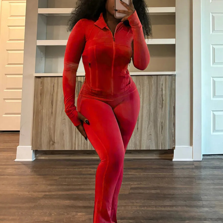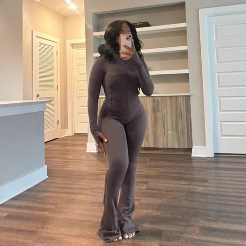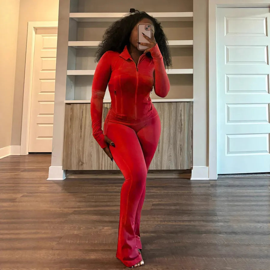 Elegant Sexy Women's Casual Long Sleeve Slim Fit Two-Piece Set Spring Summer Fashion Sportswear Micro Flared Trousers Ensemble