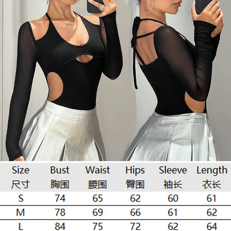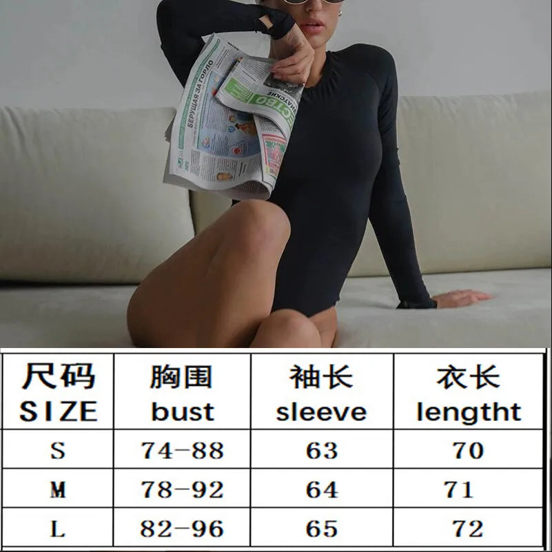 Elegant Solid Color Long Sleeve Jumpsuit Women's Fashion Summer Hollow Out Inner Wear Slim Fit One Piece Suit Vacation Style