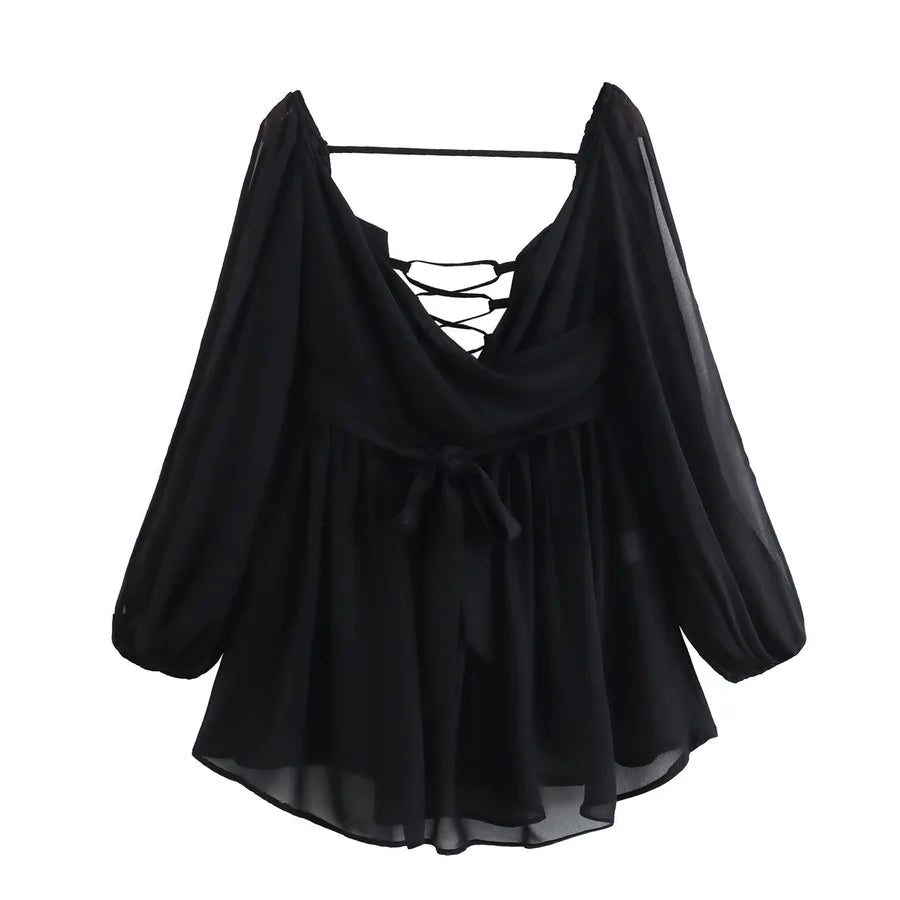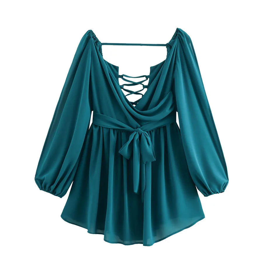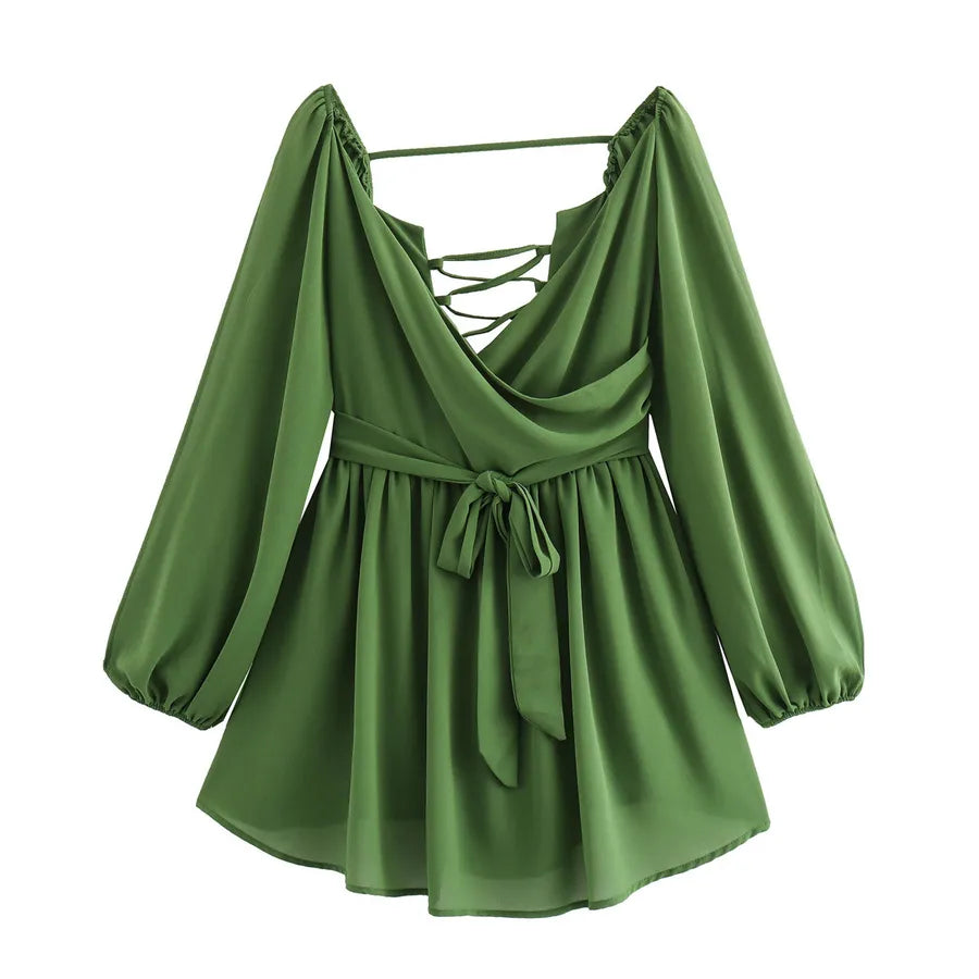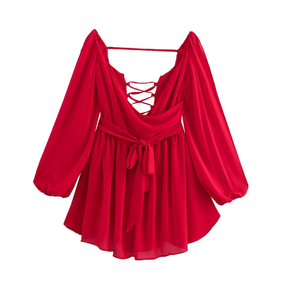 Elegant V-neck Sleeveless Dress With Rope Waist And Shoulder Exposure Polyester Pure Color Skirt Style Office Commute Dress