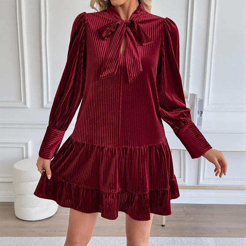 Elegant Velvet Dress Women's Style Vintage French Fashion Long Sleeve V-Neck Gown For Banquet Party Evening Short Skirt