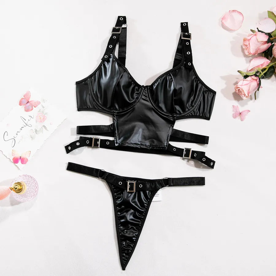 Europe and the United States nightclub hot girl PU motorcycle sexy leather vest underwear uniform temptation sexy suit female 3050