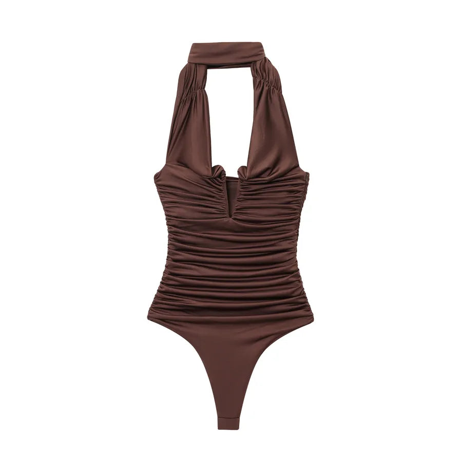 European Style Spaghetti Strap Nylon Blend One Piece Romper For Women Elastic Cotton Polyester Blend Three Quarter Sleeves