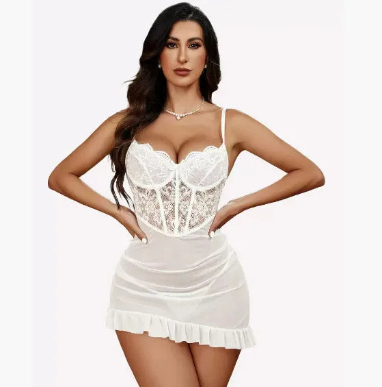 Explosions Perspective Lingerie Sexy Hollow Lace Perspective Slip Skirt Slim Fit Push-up Pajamas