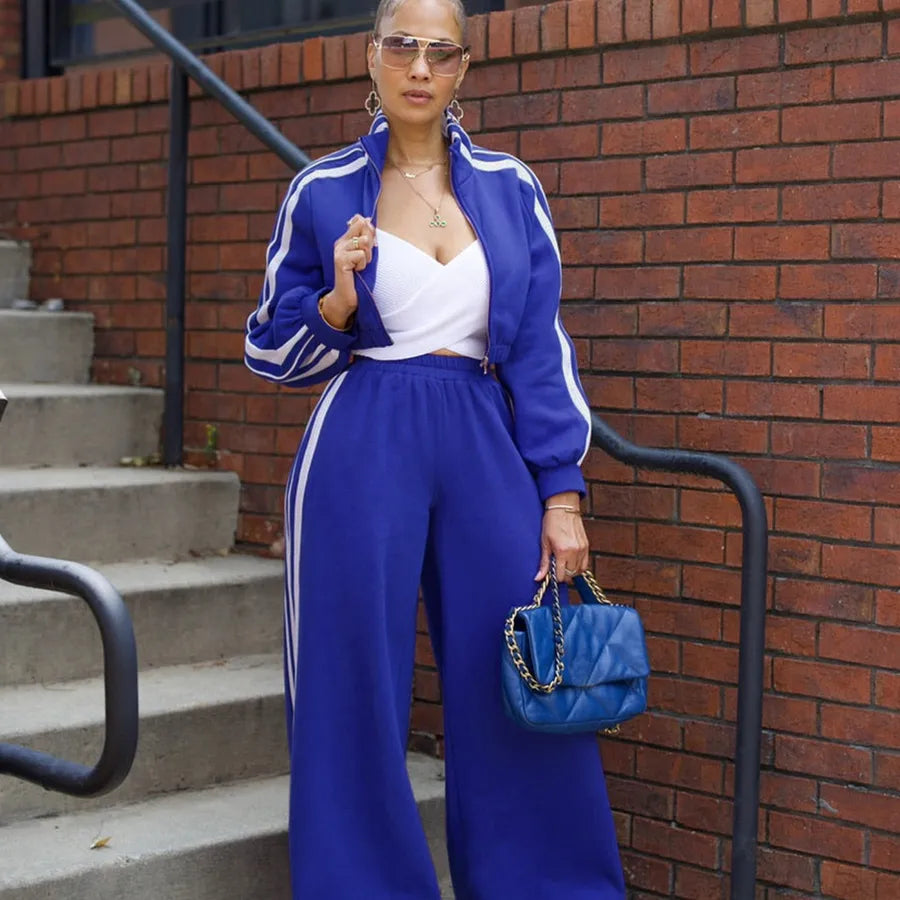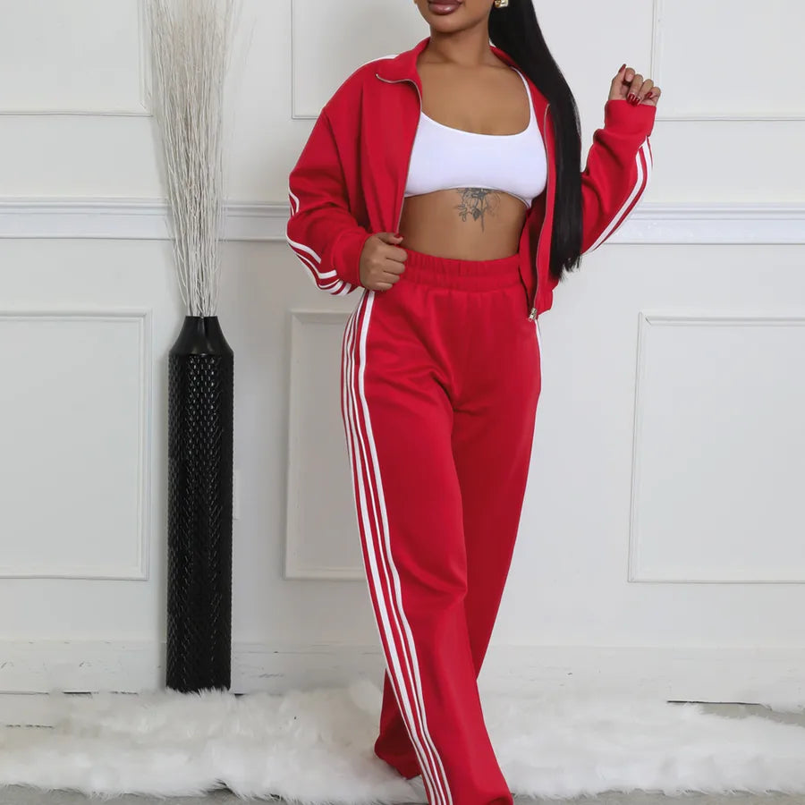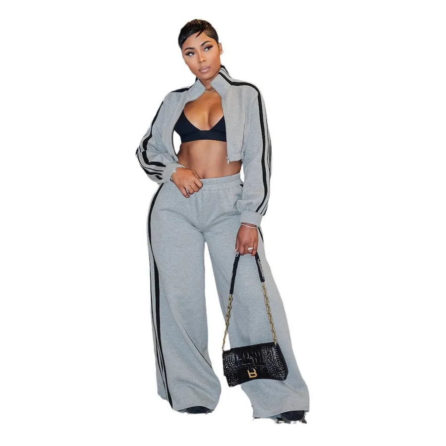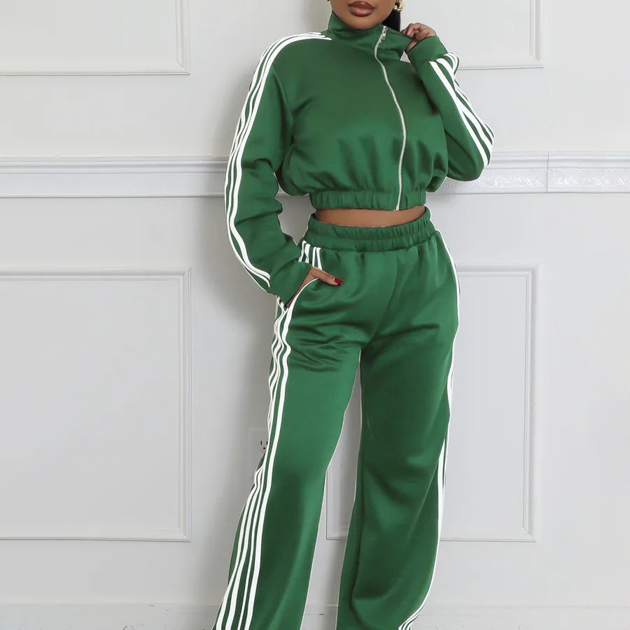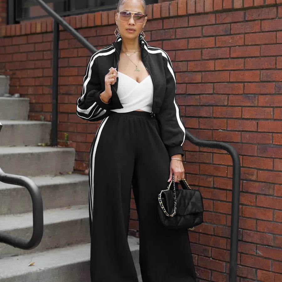 Fall New Striped Set Zipper Thickened Sweatshirt Casual Commute Two-piece Set Women's Fashion Street Style Long Sleeve Pants