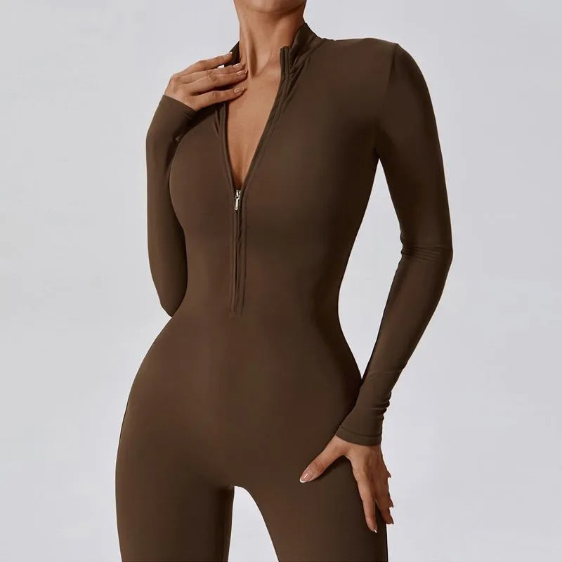 Fall New Style One-Piece Long Sleeve Tight Fit Yoga Suit Women's Elastic Jumpsuit Sexy Print Fabric Ladies All-In-One Suit