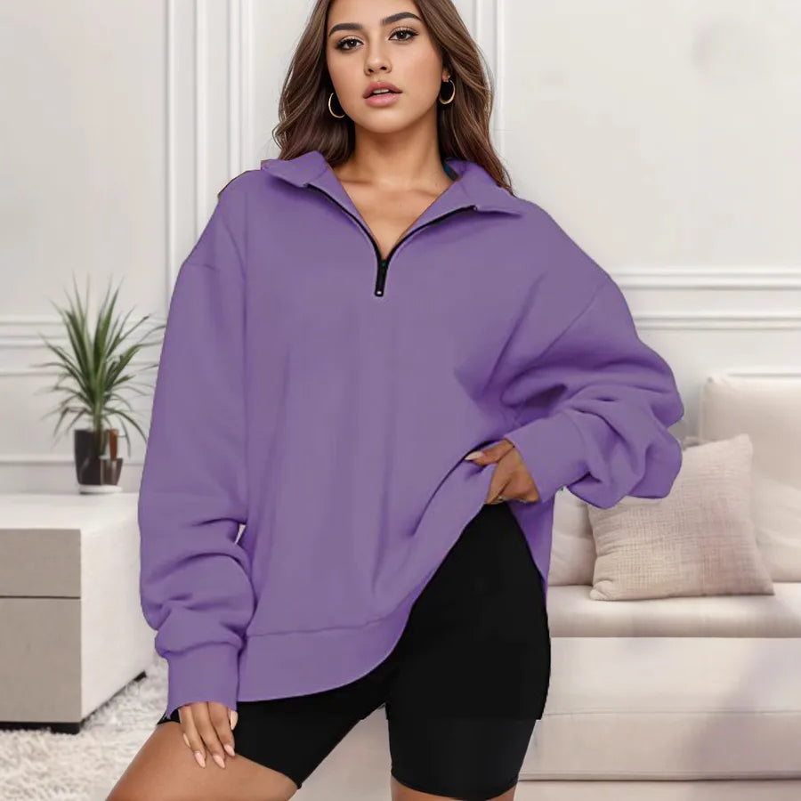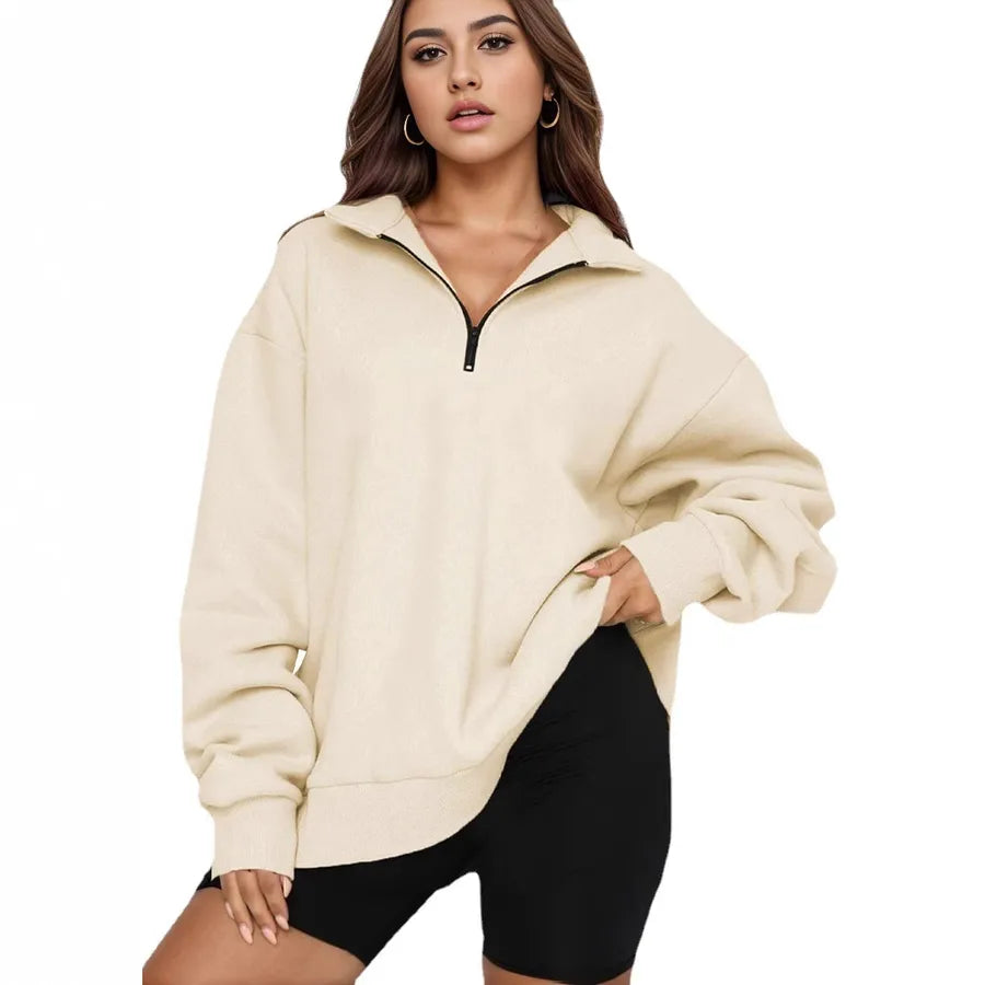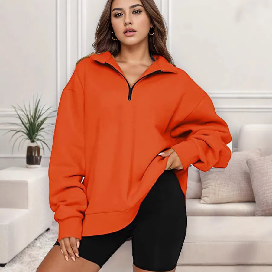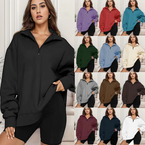Fall Winter New Women's Casual Long Sleeve Hoodie Sweatshirt European Style Zipper Pullover Sportswear Street Fashion Loose Fit
