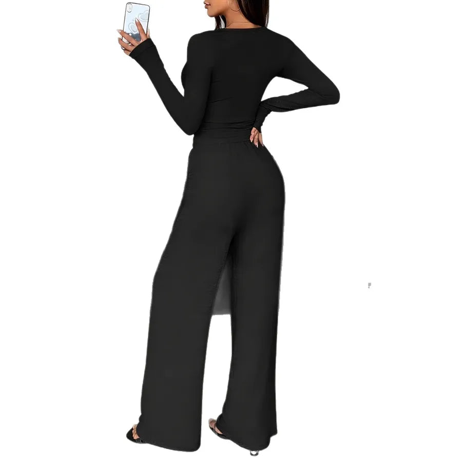 Fall Women's European Style Long Sleeve Pure Color Slim Fit Top And Pants Two Piece Set Fashion Casual Outfit