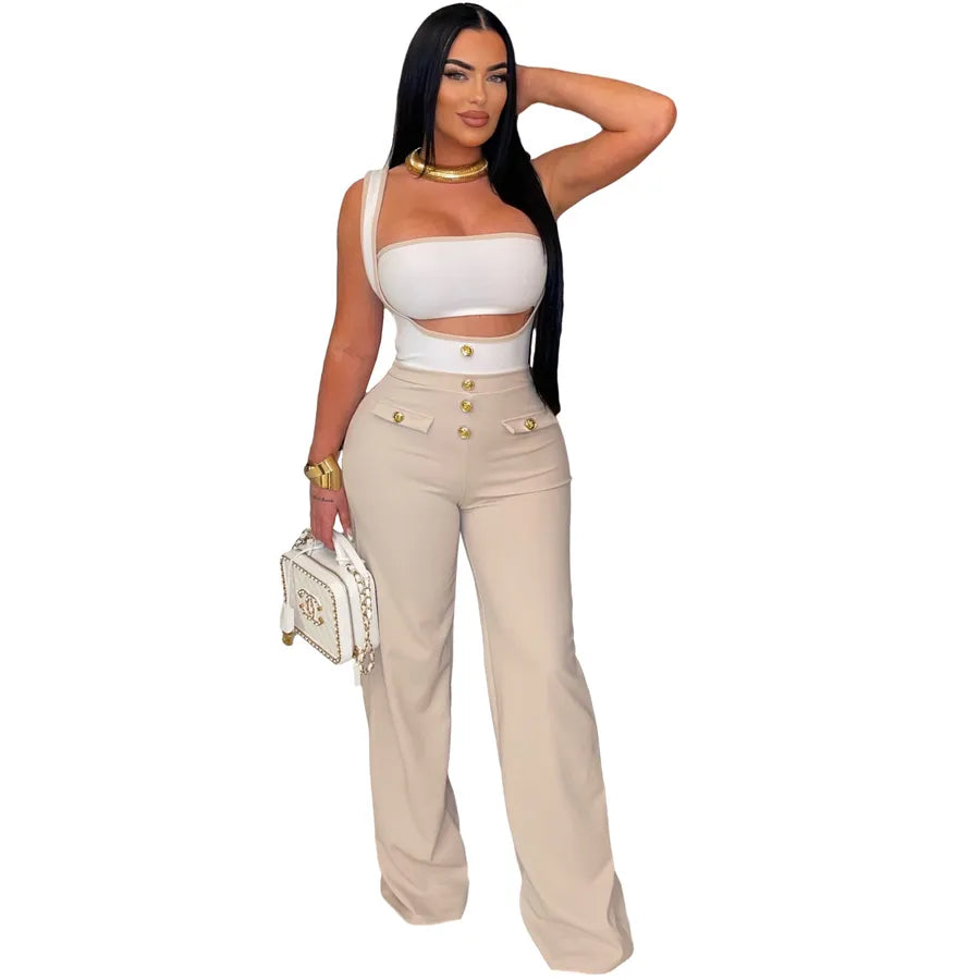 Fashionable Casual Strapless Bodysuit Set S2401 European Women's Clothing Comfortable Loose Fit Long Pants No Sleeve Knitted