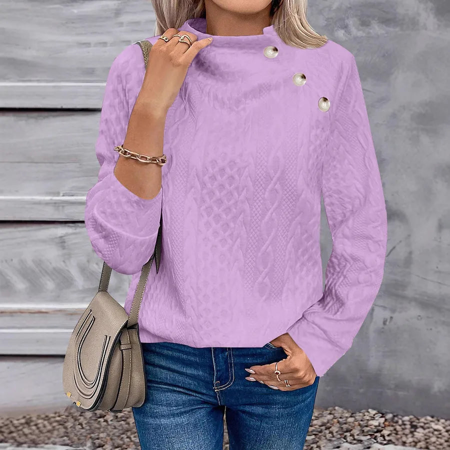 Fashionable High Collar Button Casual Sporty Sweatshirt T-Shirt Women's Style Classic College Fresh Sweet Long Sleeve Tumescent