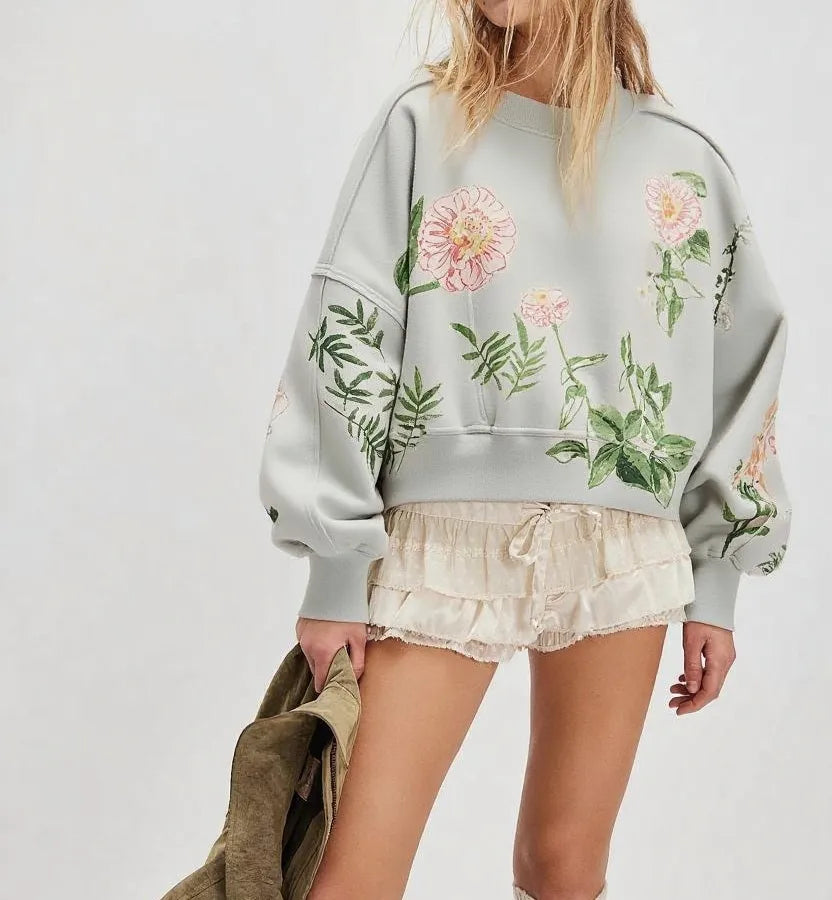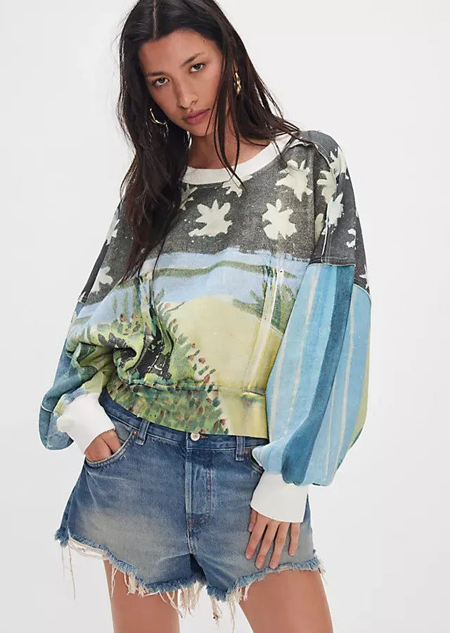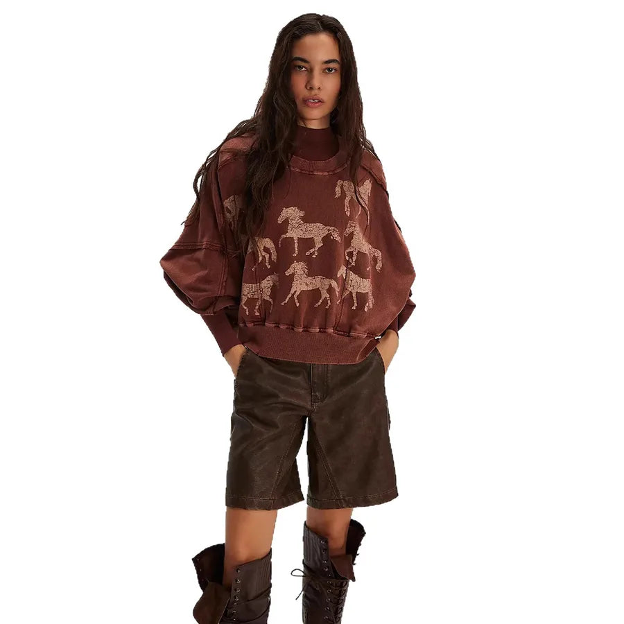Fashionable Printed Loose Women's Sweatshirt Autumn Winter New Style Casual Versatile Women's Long Sleeve Round Neck Polyester