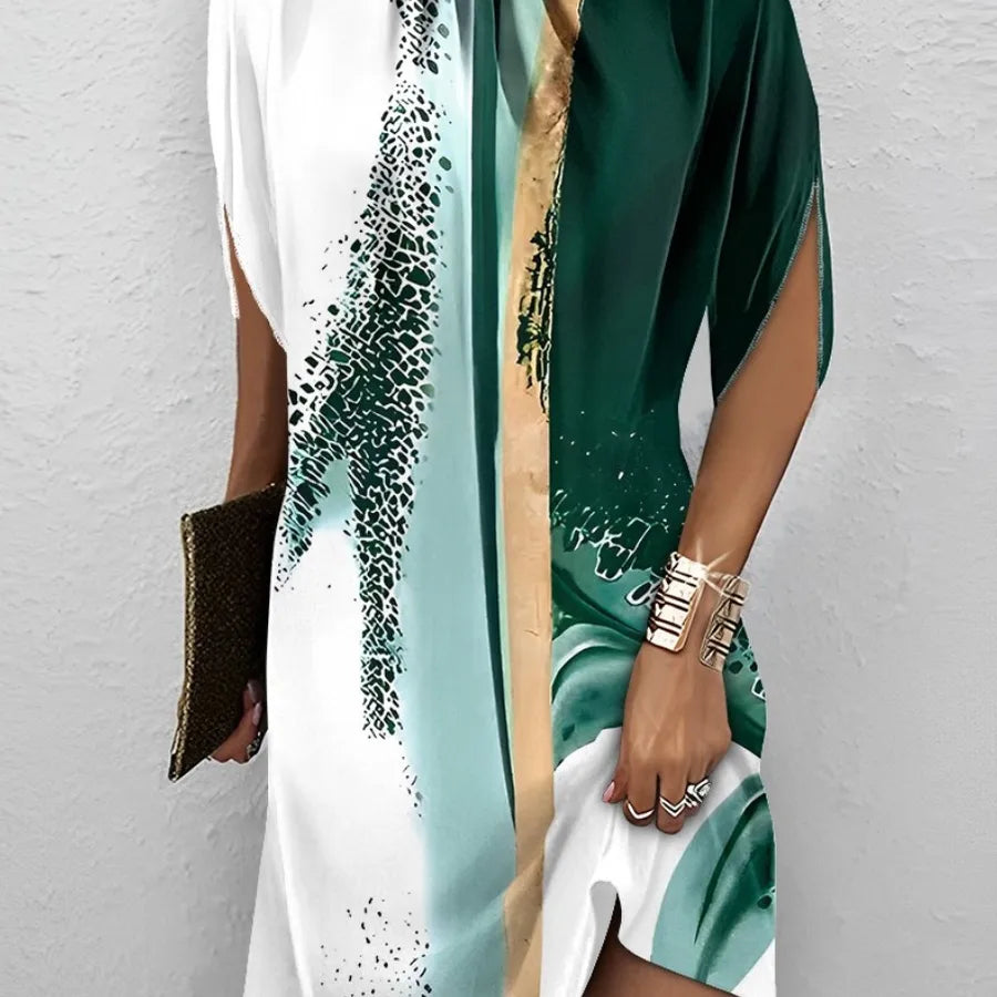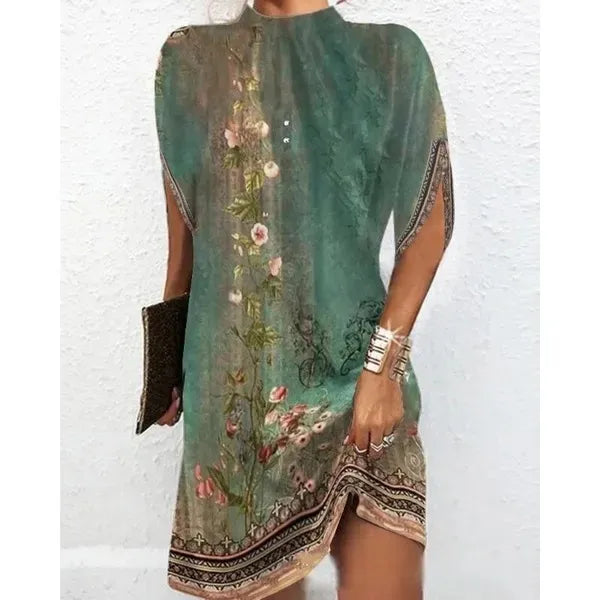 Fashionable Round Neck Loose Batwing Sleeve Dress Elegant Style Short Sleeve Polyester Fabric Printed 3D Pattern Irregular Skirt