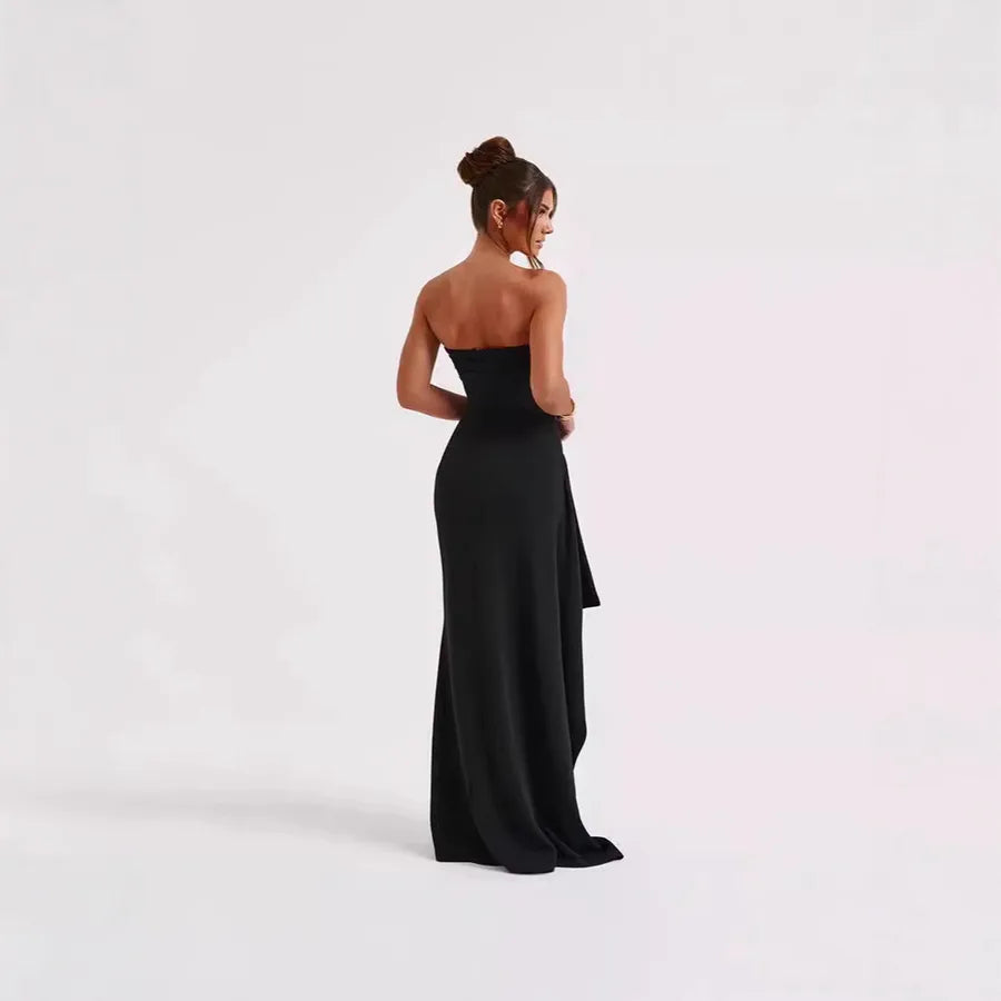 Fashionable Sexy One Shoulder Backless Long Dress Evening Gown Women's Strapless Dress High Slit Autumn Elegant Style Without Sleeve