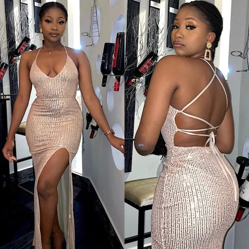 Fashionable Sexy Two-Piece Backless Strap Dress Women's Clothing OS6784 European Style V-Neck Sleeveless Summer Dress