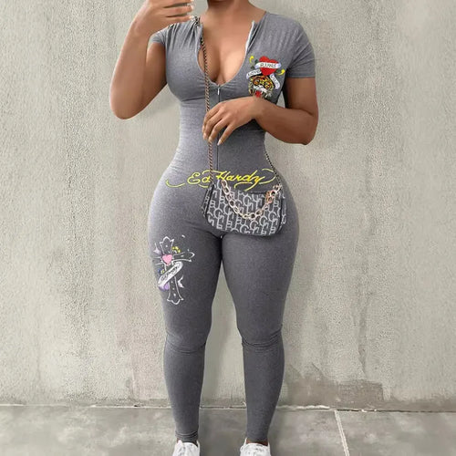 Fashionable Short Sleeve Floral Print One Piece Women's Suit European Style High Street Small Foot Pants Long Leggings