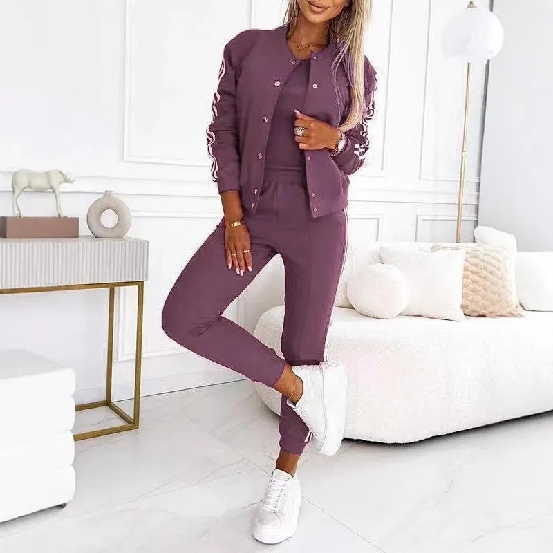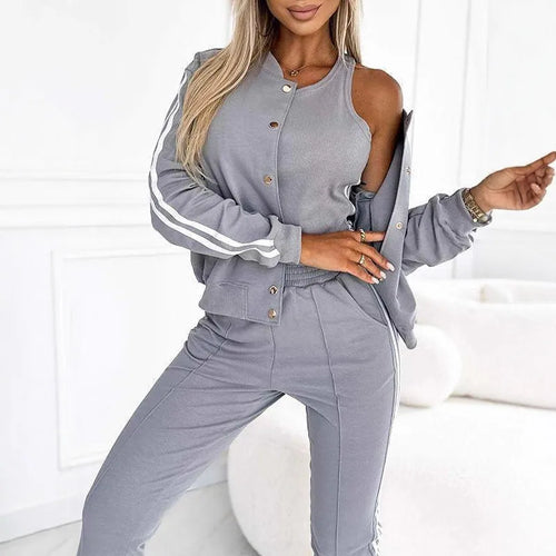 Fashionable Slim Fit Vest Casual Outerwear Three Piece Set New Arrival Polyester Fabric Seven Sleeve Long Pants Commute Style