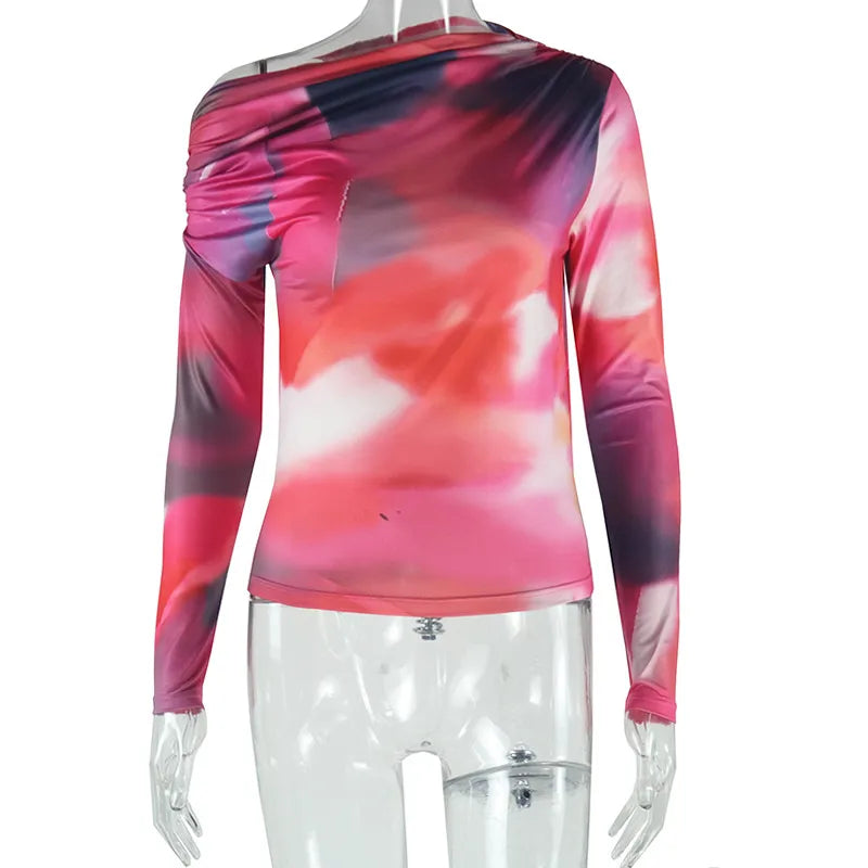 Fashionable Street Style Women's T-shirt Long Sleeve Print Casual Versatile Shoulder Print Crew Neck Top European Style