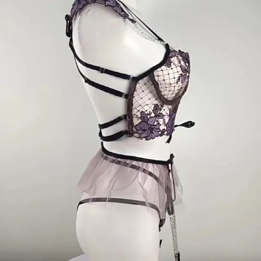 foreign trade new sexy lingerie sexy women's mesh embroidery three-piece lingerie sexy suit wholesale