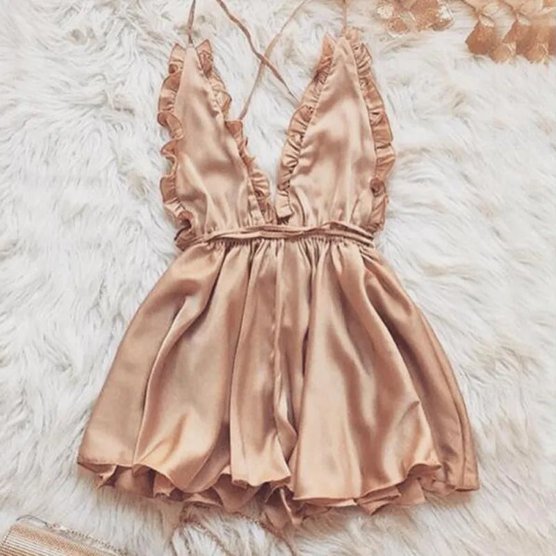 Foreign Trade Sexy Dress Deep V-Neck Hanging Neck Tether Backless Lingerie Fashion Dress Pants