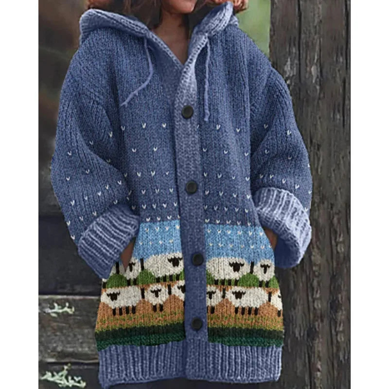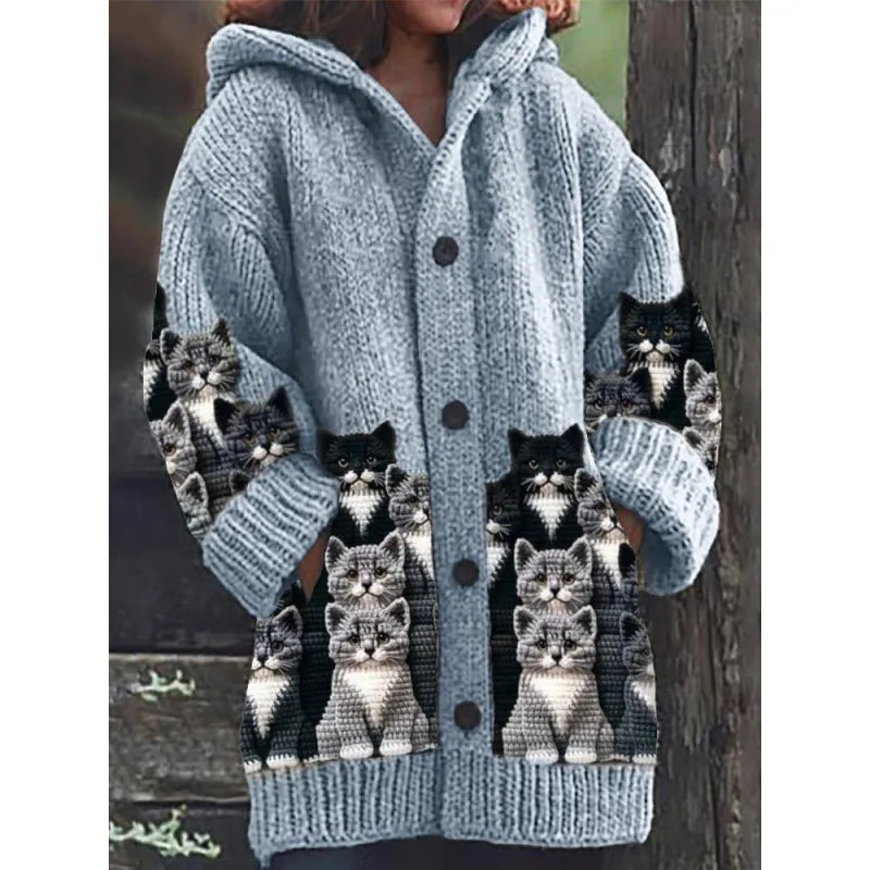 Halloween Animal 3D Print Casual Hooded Cloak Jacket Women's Sweatshirt Polyester Fabric Long Sleeve V-neck Street Style