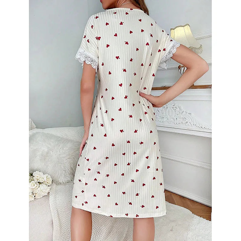 Heart-shaped Pajamas Women's Summer New Sense V-neck Lace Comfortable Nightgown Sweet Love dress Home Clothes