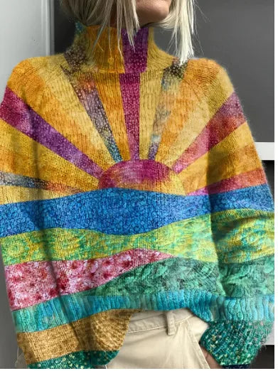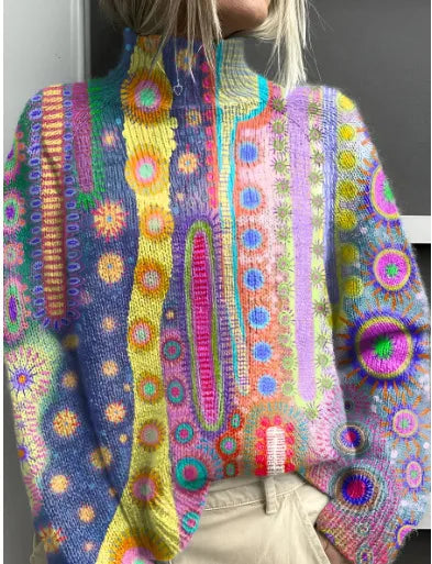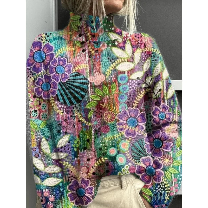 High Collar Long Sleeve 3D Patchwork Pattern Printed Sweatshirt Autumn Winter New Style European Women's Fashion Casual Loose Fit