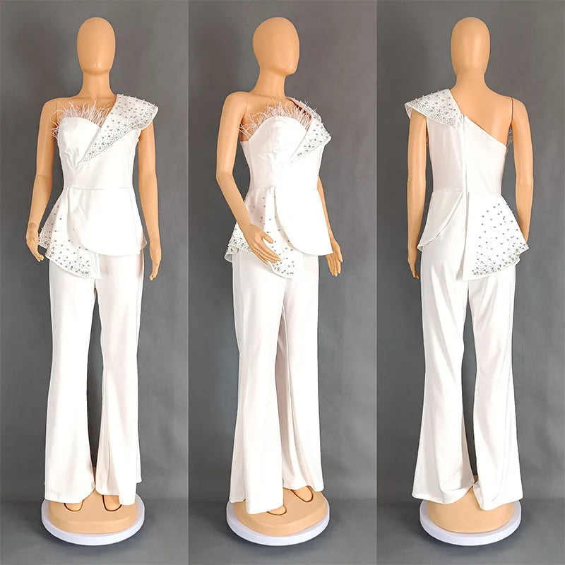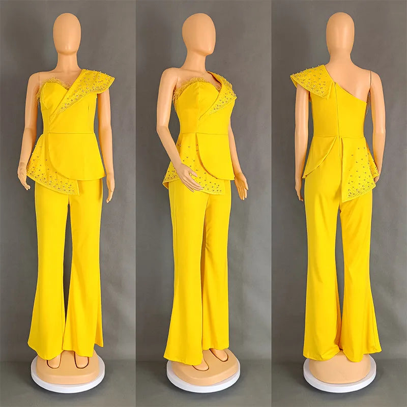 High Waist Wide Leg One Piece Shoulder Bared Casual Style Women's Clothing Polyester Roman Cloth Fabric