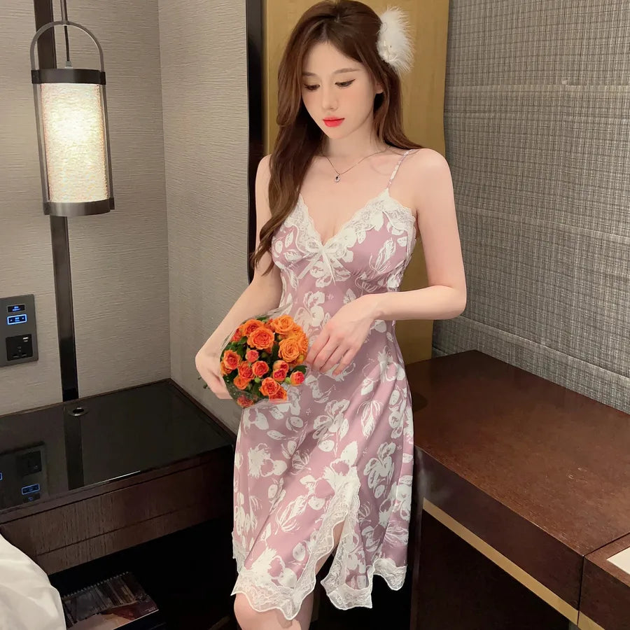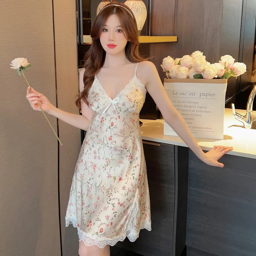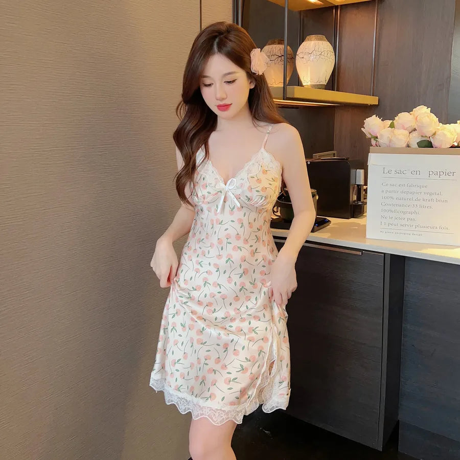 Home Lady Sweet Flower Polyester Pajama Sets