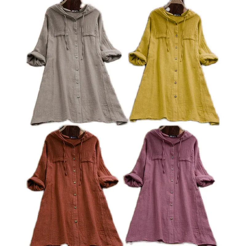 Hoodie Long Sleeve Plus Size Tops Button Streetwear Solid Color
