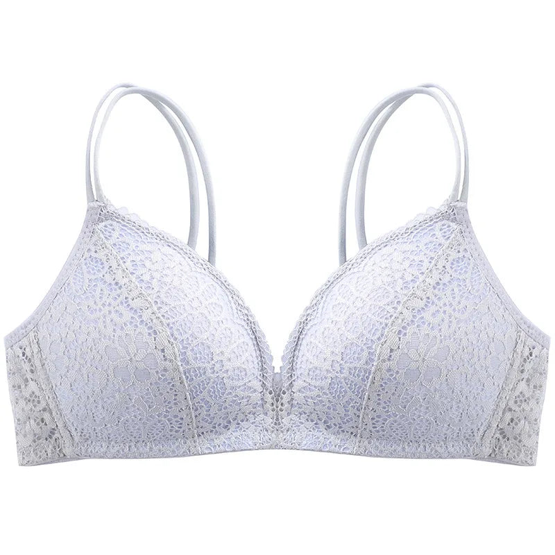 Lace Backless Bralette Comfortable Wireless Lightweight Breathable Gathered Nylon Cotton Casual Style 3/4 Cup Seamless Bra