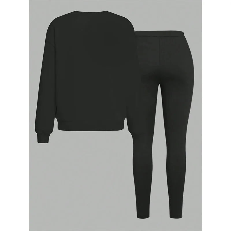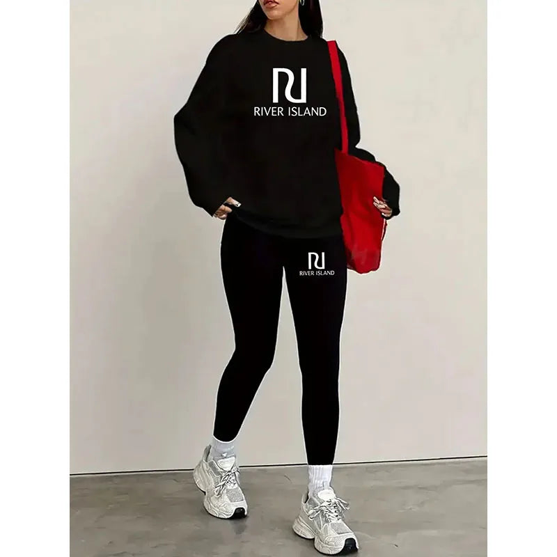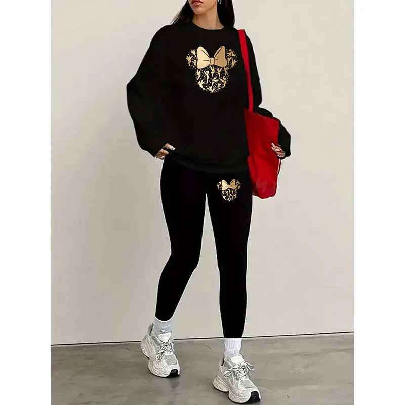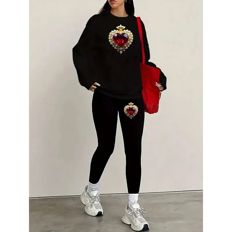 Ladies Casual Round Neck Printed Sweatshirt And Pants Two Piece Set Autumn Winter Fashion Comfortable Polyester Clothing