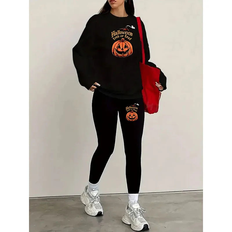 Ladies Casual Round Neck Printed Sweatshirt And Pants Two Piece Set Autumn Winter Fashion Comfortable Polyester Clothing