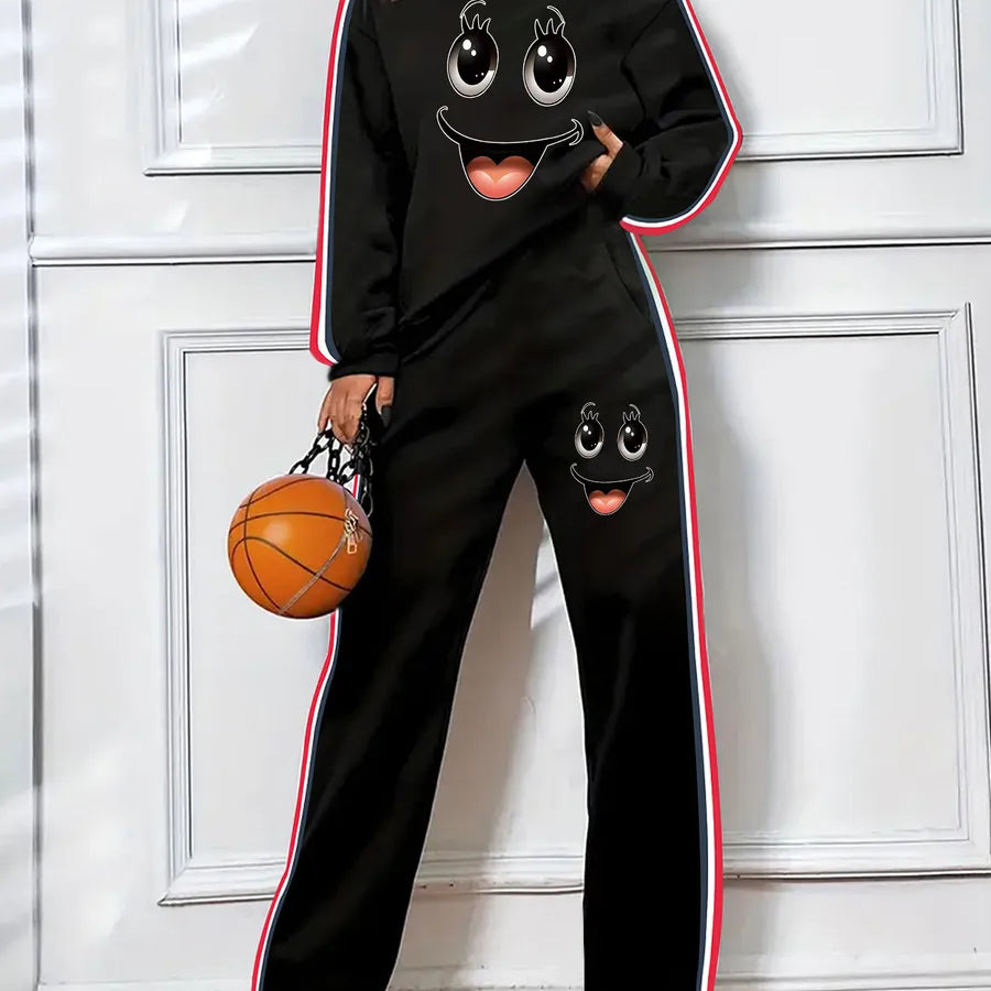 Ladies Fashion Print Round Neck Sweatshirt Set Long Sleeve Long Pants Sportswear Elegant Casual Outfit Autumn Winter New Arrival
