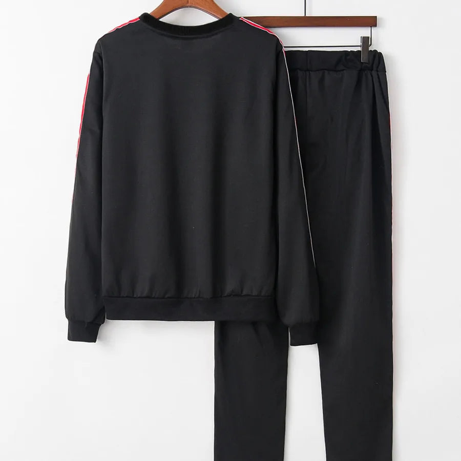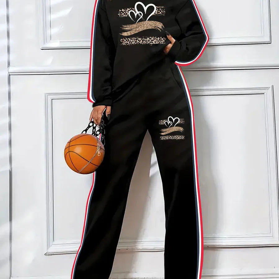 Ladies Fashion Print Round Neck Sweatshirt Set Long Sleeve Long Pants Sportswear Elegant Casual Outfit Polyester Fabric