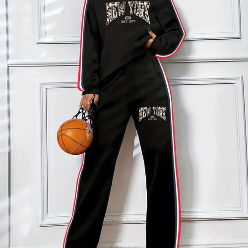 Ladies Fashionable Print Round Neck Long Sleeve Sweatshirt Set Autumn Winter Sportswear Casual Comfortable Polyester Tracksuit