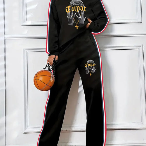 Ladies Fashionable Round Neck Printed Sweatshirt Set Long Sleeve Sports Pants Autumn Winter New Arrival Elegant Casual Outfit