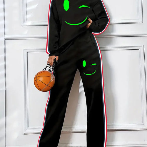 Ladies Fashionable Round Neck Sweatshirt Set Long Sleeve Sports Outfit Autumn Winter New Style Comfortable Polyester Tracksuit