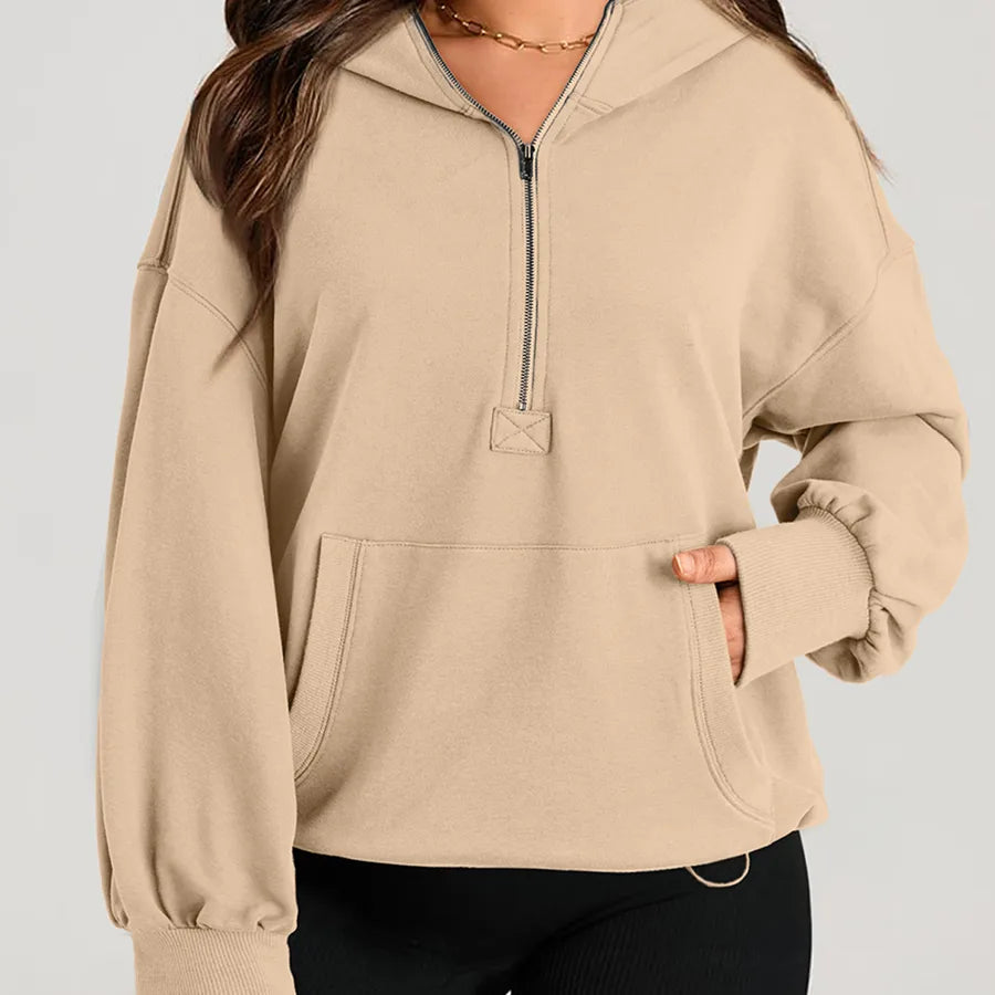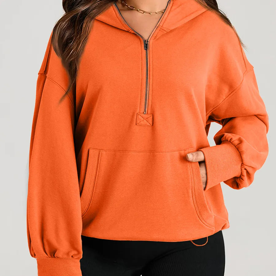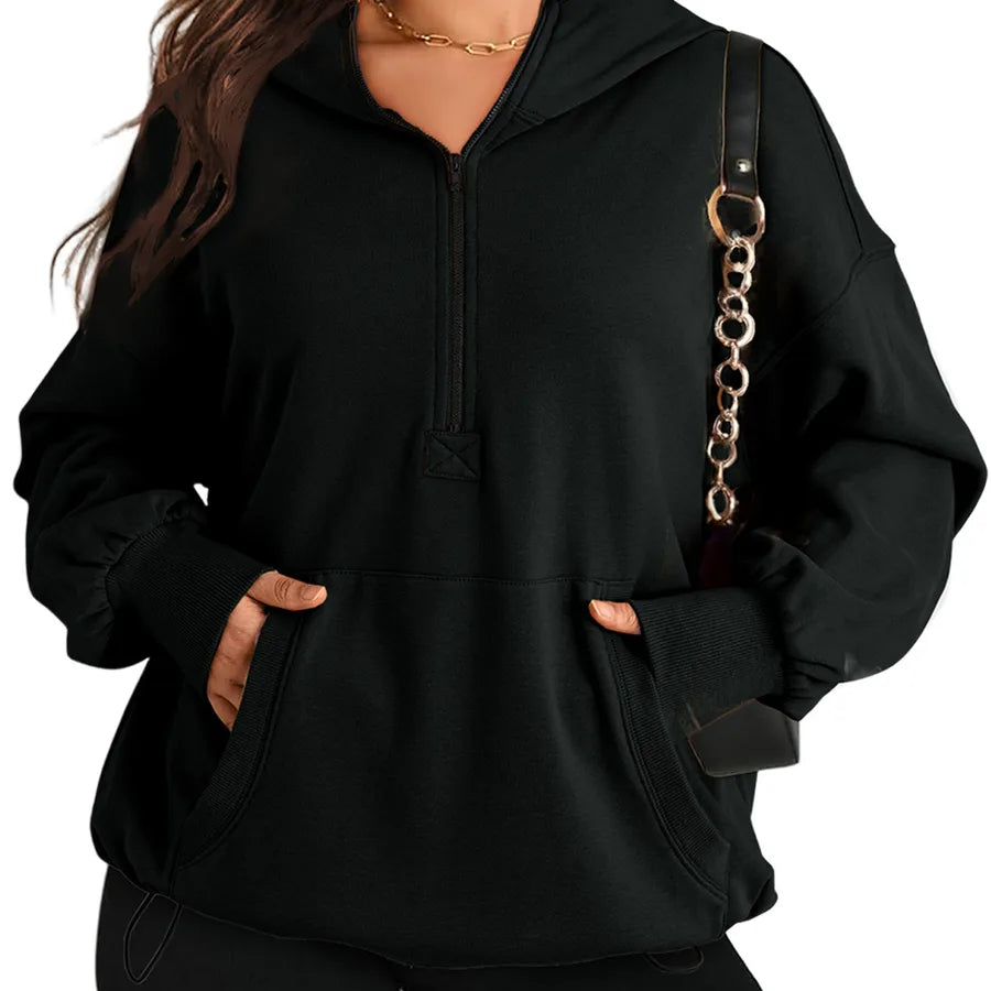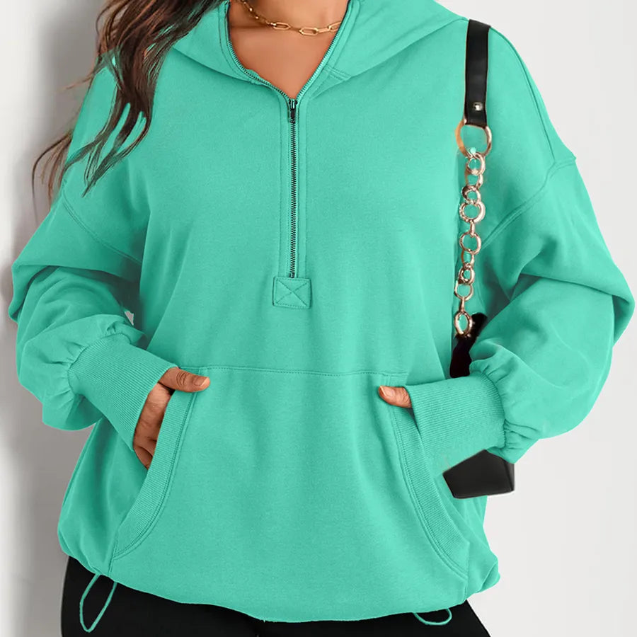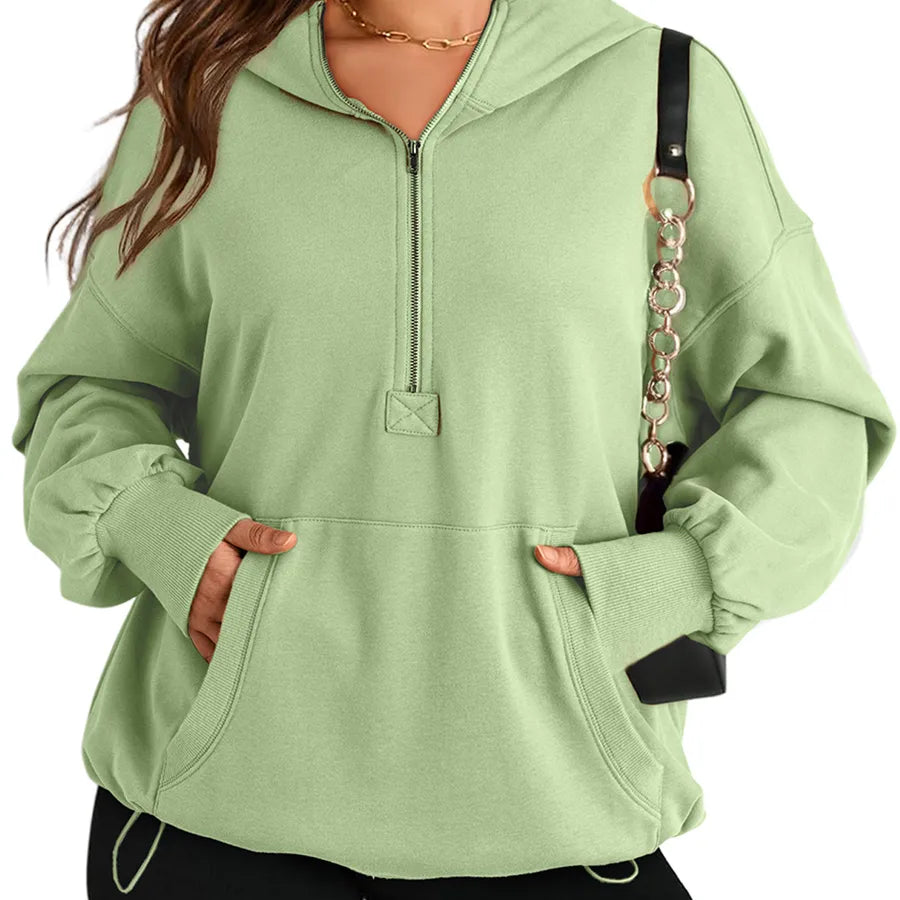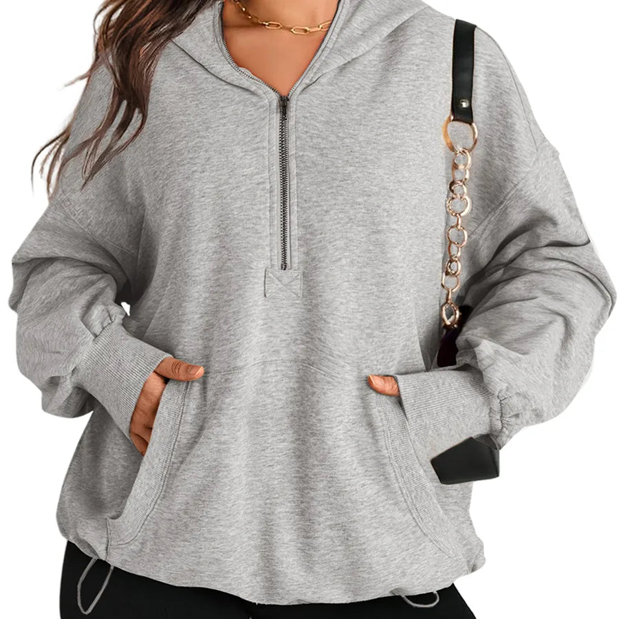 Ladies Long Sleeve Hoodie Pure Color Zipper Pocket Sweatshirt Street Style High Street Loose Fit Autumn Winter Fashion