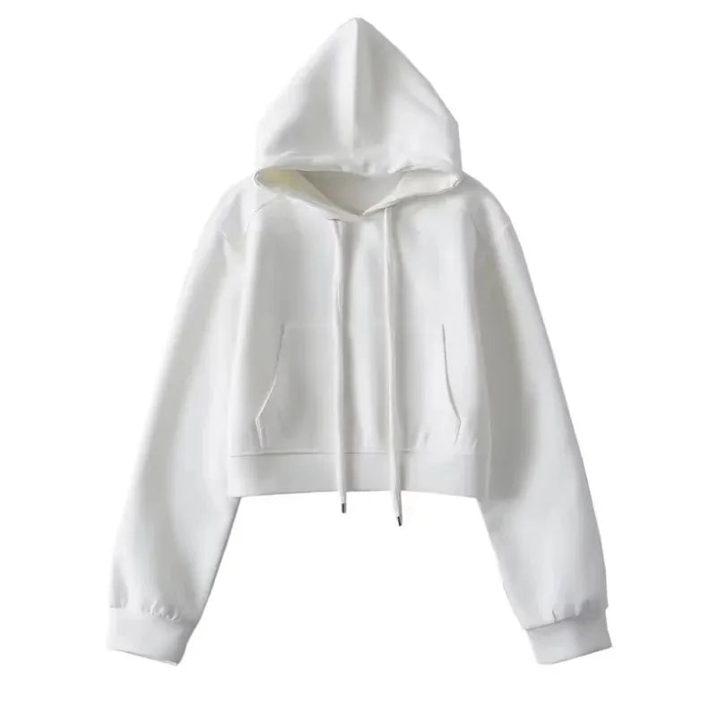 Laid-back Style Women's Short Hoodie Sweatshirt Loose Fit Casual Sportswear Jacket Pure Color Autumn Winter New Arrival American Style