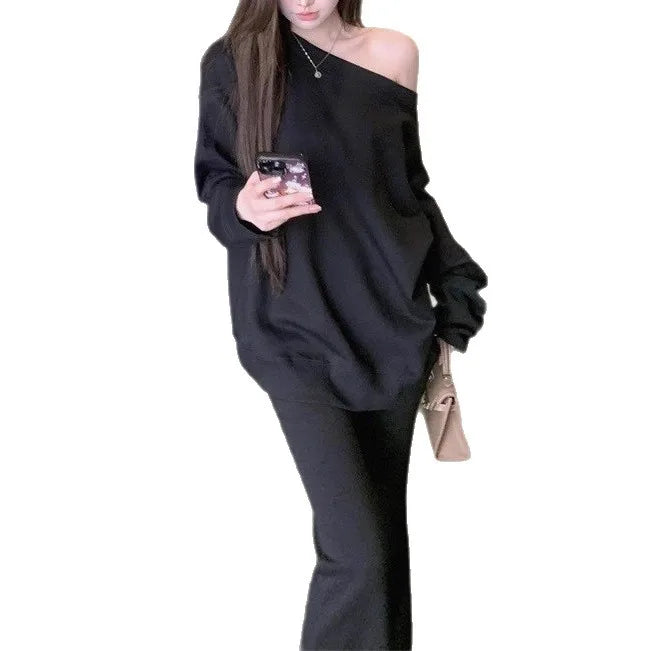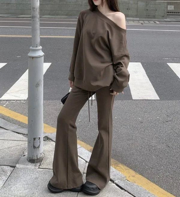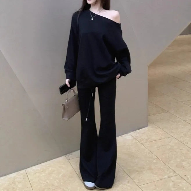 Laid-back Style Women's Sportswear Set Long Sleeve Shoulder-baring Pants Casual Two-piece Polyester Commute Fashion