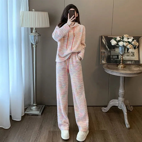 Laid-back Style Women's Sportswear Set Loose High-waist Wide-leg Pants Hoodie Two-piece Suite Casual Fashion Polyester Fabric