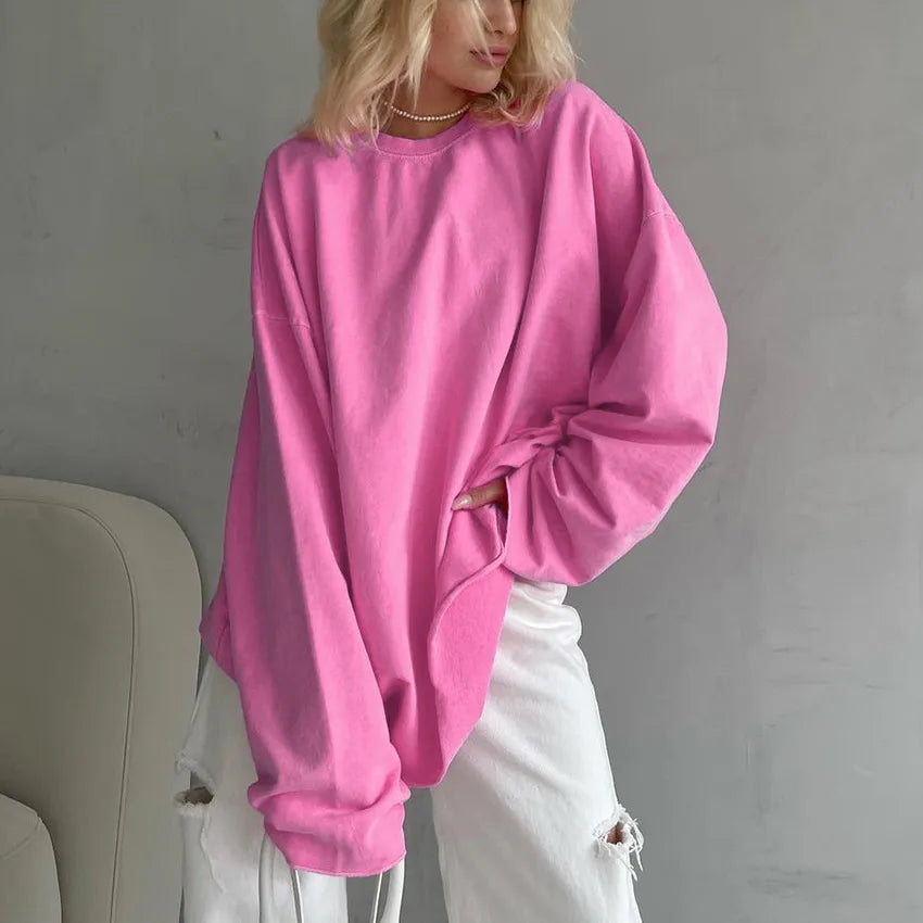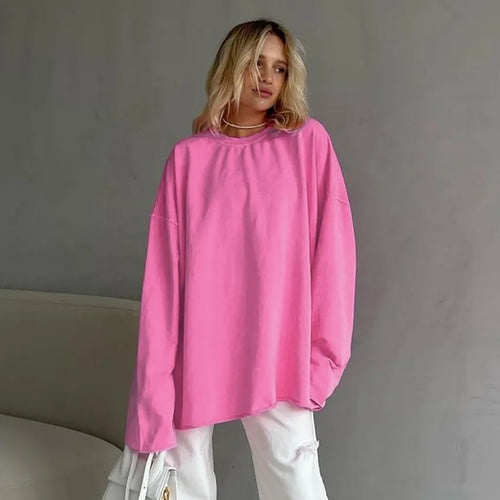 Loose Fit Pure Cotton Long Sleeve Round Neck T-Shirt Women's Design Sensation Street Style Pink Color Summer Autumn Fashion