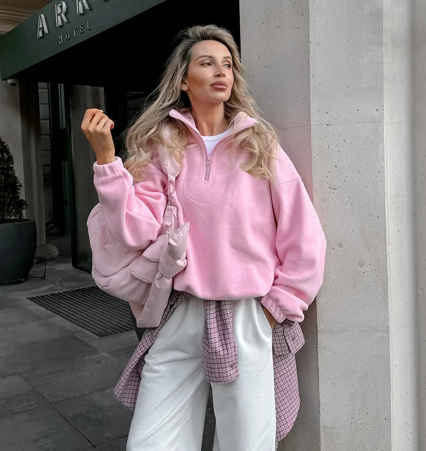 Loose Lamb Velvet Pullover Hoodie Fashionable Fleece Women's Clothing Autumn Winter New Style Turn-down Collar Sweatshirt