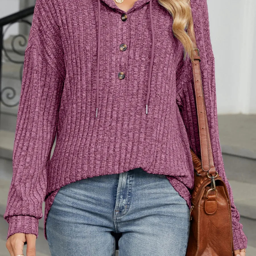 Loose Long Sleeve Hoodie Women's Casual Comfortable Pure Color Button Up Sweatshirt Autumn Winter New Style