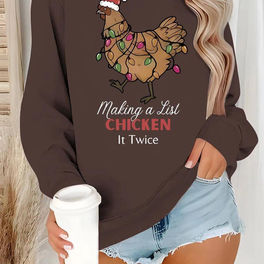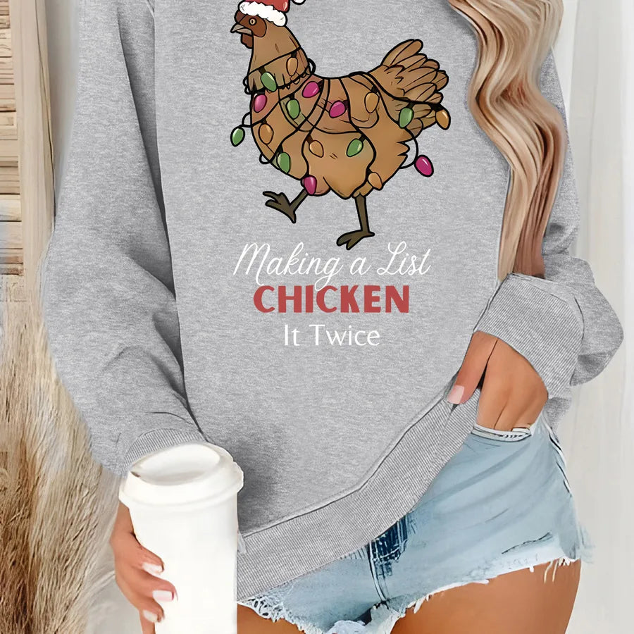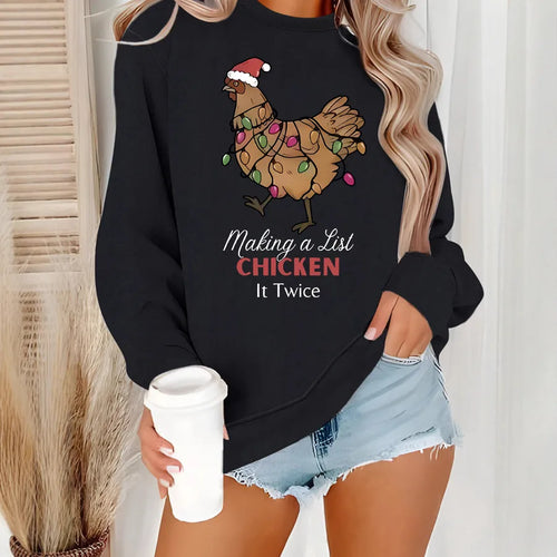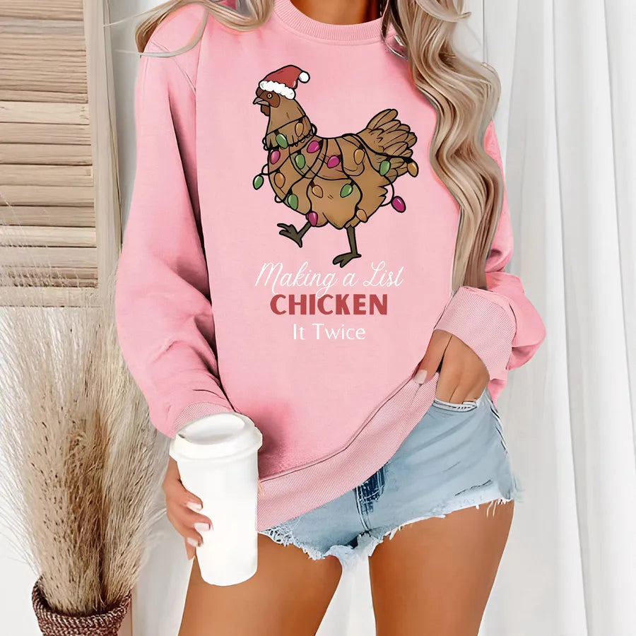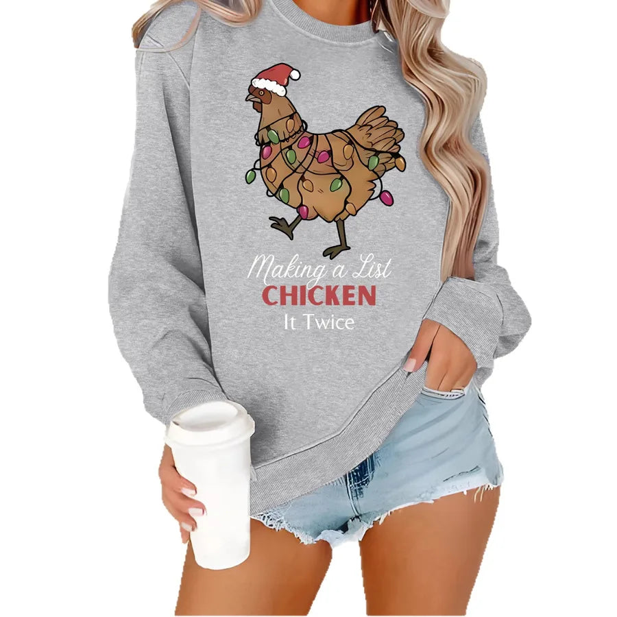 Loose Long Sleeve Round Neck Christmas Element Printed Ladies Sweatshirt Comfortable Casual Style Street High Street Fashion