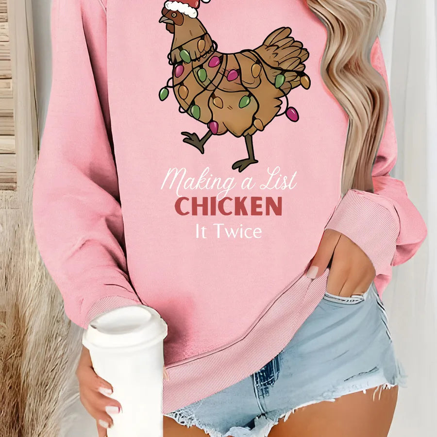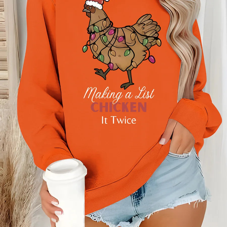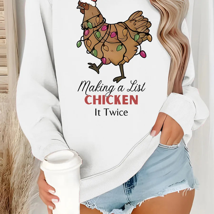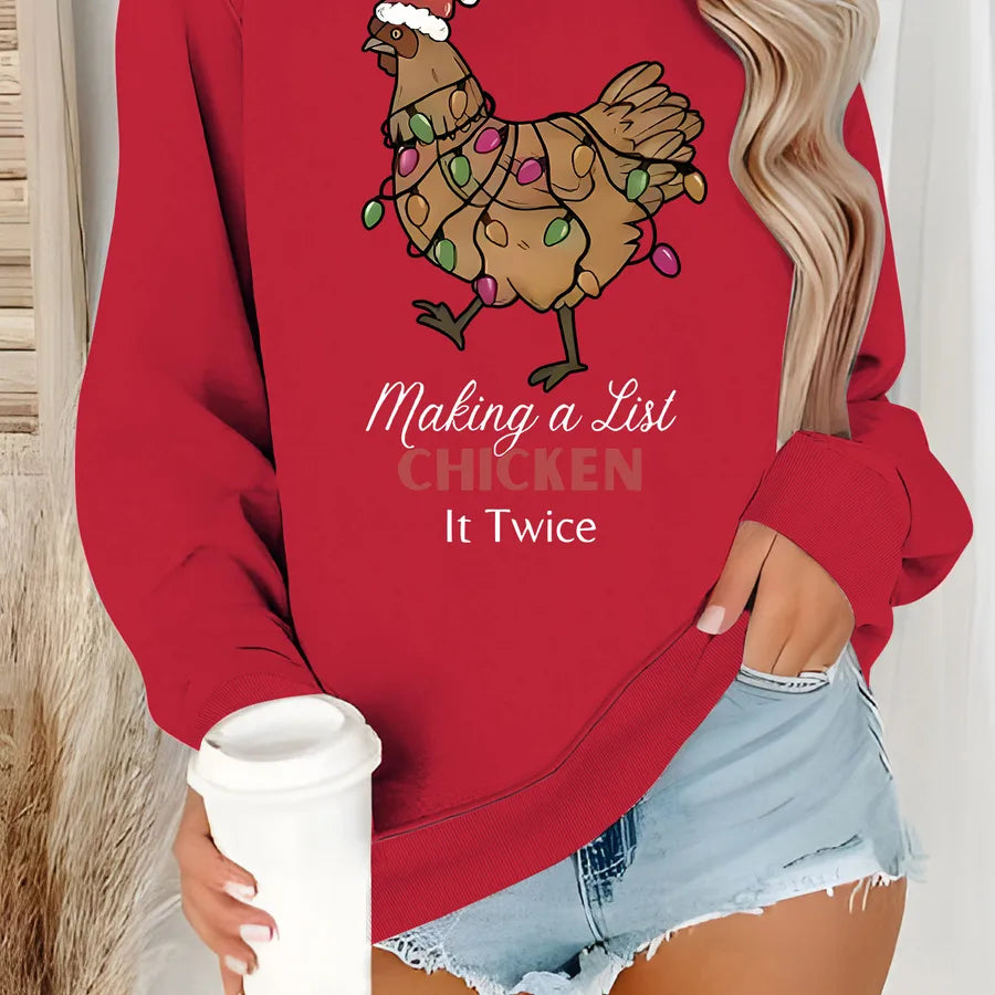 Loose Long Sleeve Round Neck Christmas Element Printed Ladies Sweatshirt Comfortable Casual Style Street High Street Fashion
