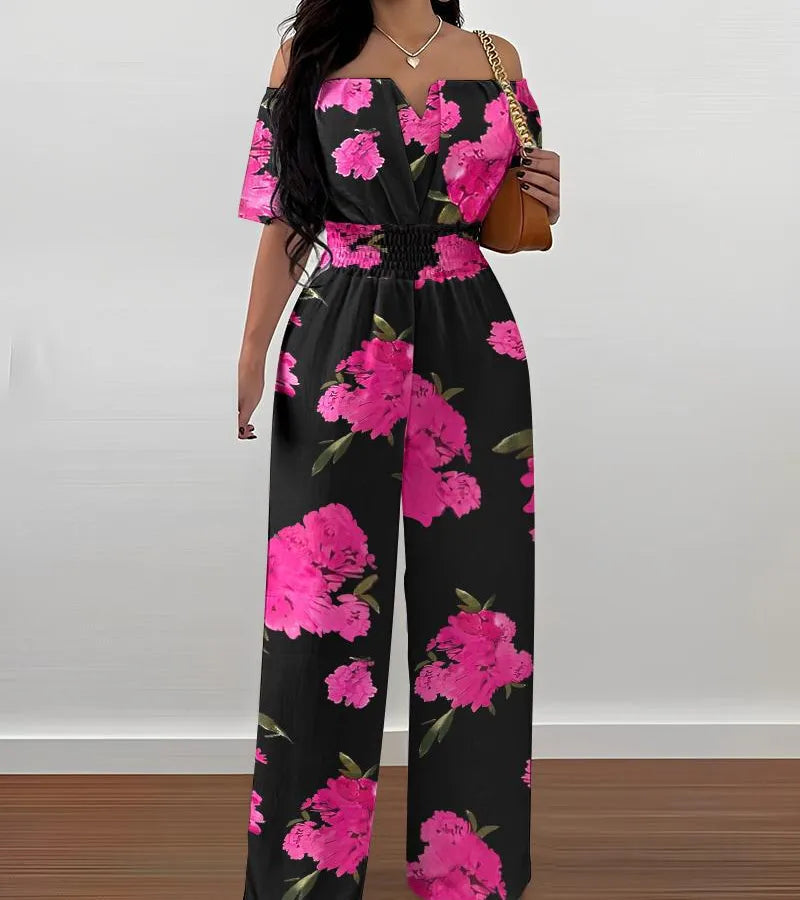 Loose Straight One-Piece Pants Women's Workwear V-Neck Versatile Trousers Style Three-Quarter Sleeves