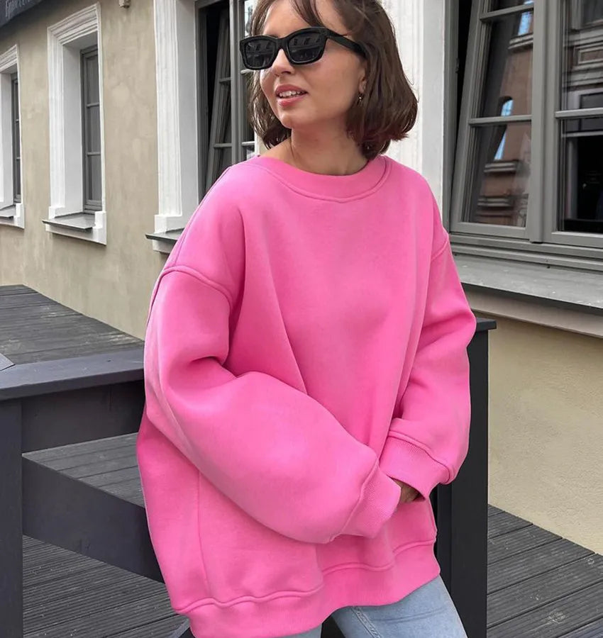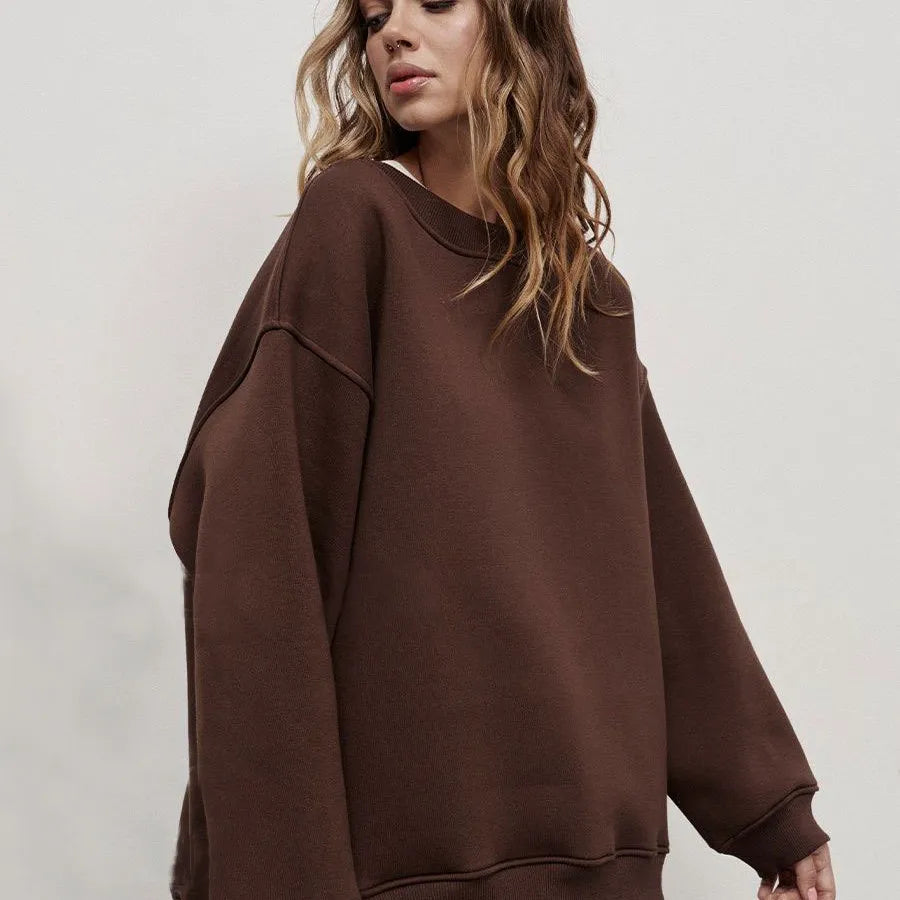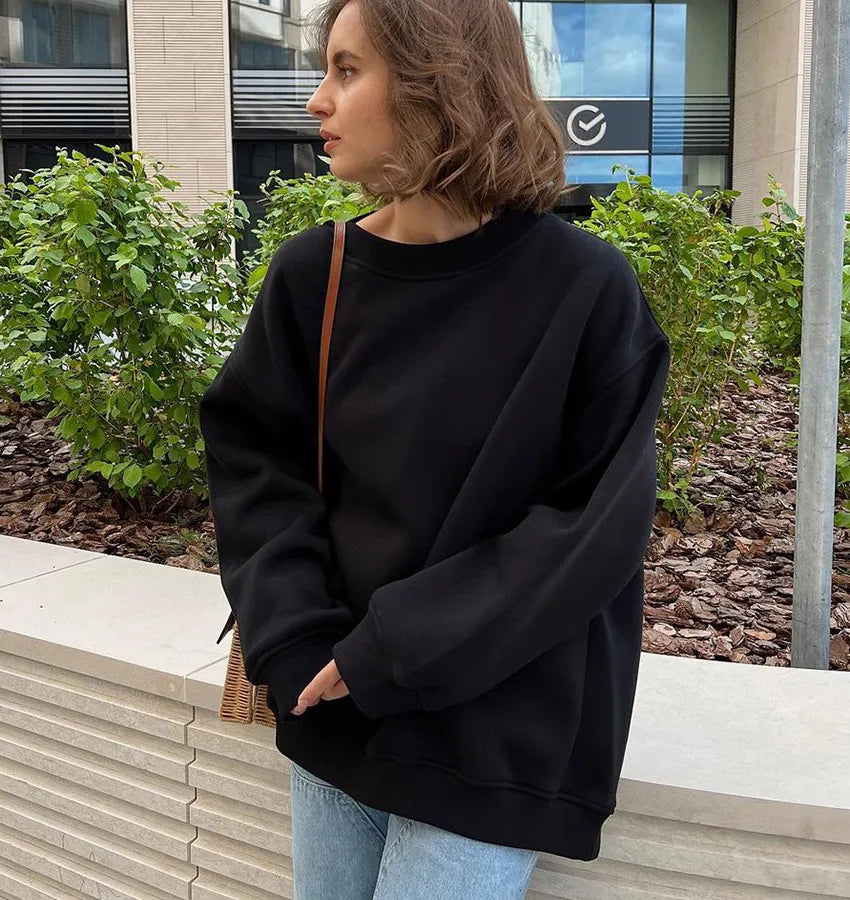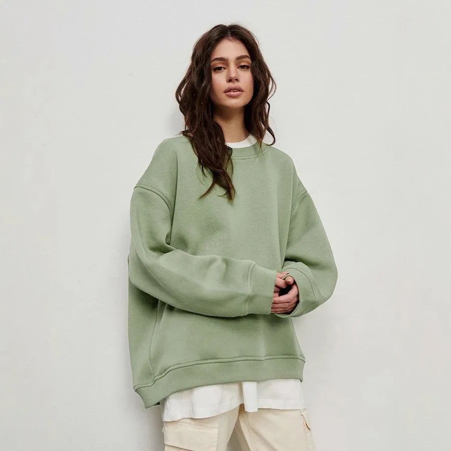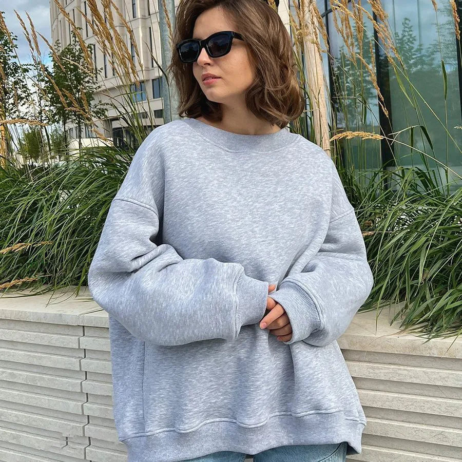 Loose Women's Pullover Hoodie Round Neck Fleece Lined Solid Color Oversize Streetwear Autumn Winter Fashion Comfortable Sweatshirt