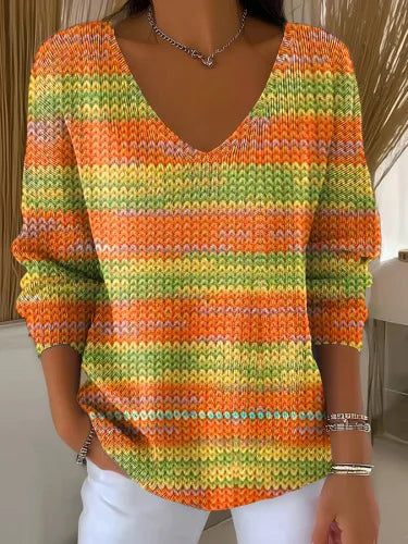 Loose Women's V-Neck T-Shirt Five-Quarter Sleeve Printed Casual Style New Fashion Factory Direct Ladies' Top